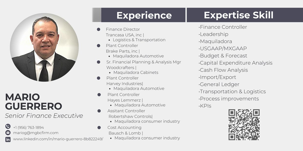 Experienced business consulting with over 25 years working with corporate finance, maquiladoras manufacturing, logistics & transportation.